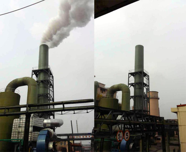 采用直接喷淋冷凝技术,将排烟温度降低的40℃以下或更低的温度,使烟气中的饱和水蒸气大部分得到了冷凝,并通过换热系统将系统热量及时换出,保证出口较低的排烟温度。同时再将除湿降温后的烟气进行再加热,使烟气相对湿度大大降低,烟气出烟囱后短时间内达不到露点温度,尾气水份不会凝结成水雾,进而达到消减白烟的目的。