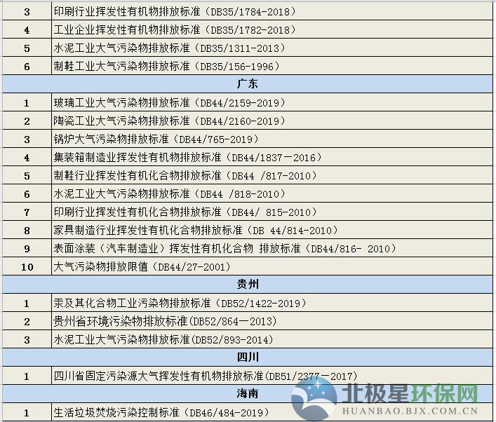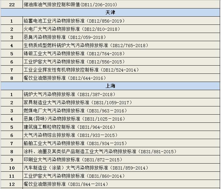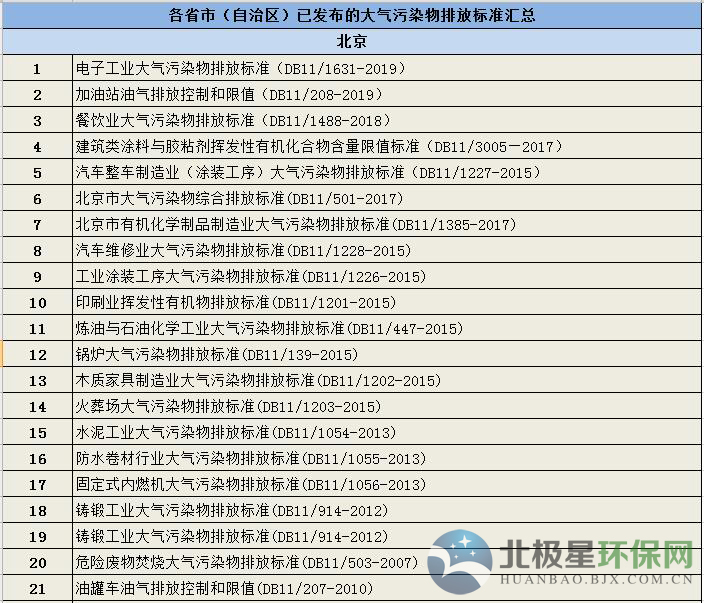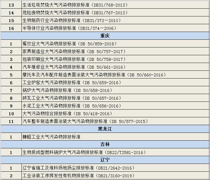 新汇总|各省市(自治区)已发布的大气污染物排放标准汇