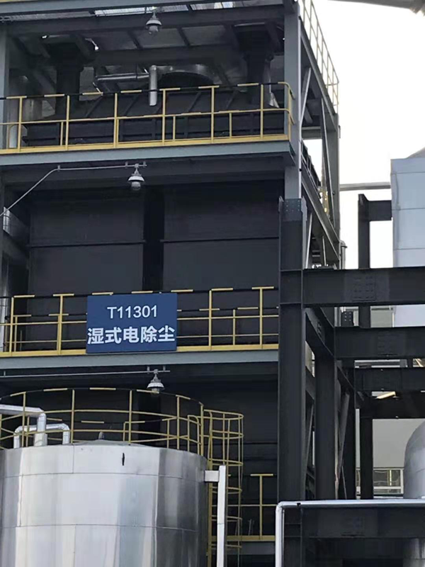 高效湿式电除雾(尘)器是利用高压直流静电吸附原理,使烟气中酸雾微小粒子和微量粉尘加速沉降于阳极管表面,酸雾、微量粉尘汇集成液体顺壁流下,排出。